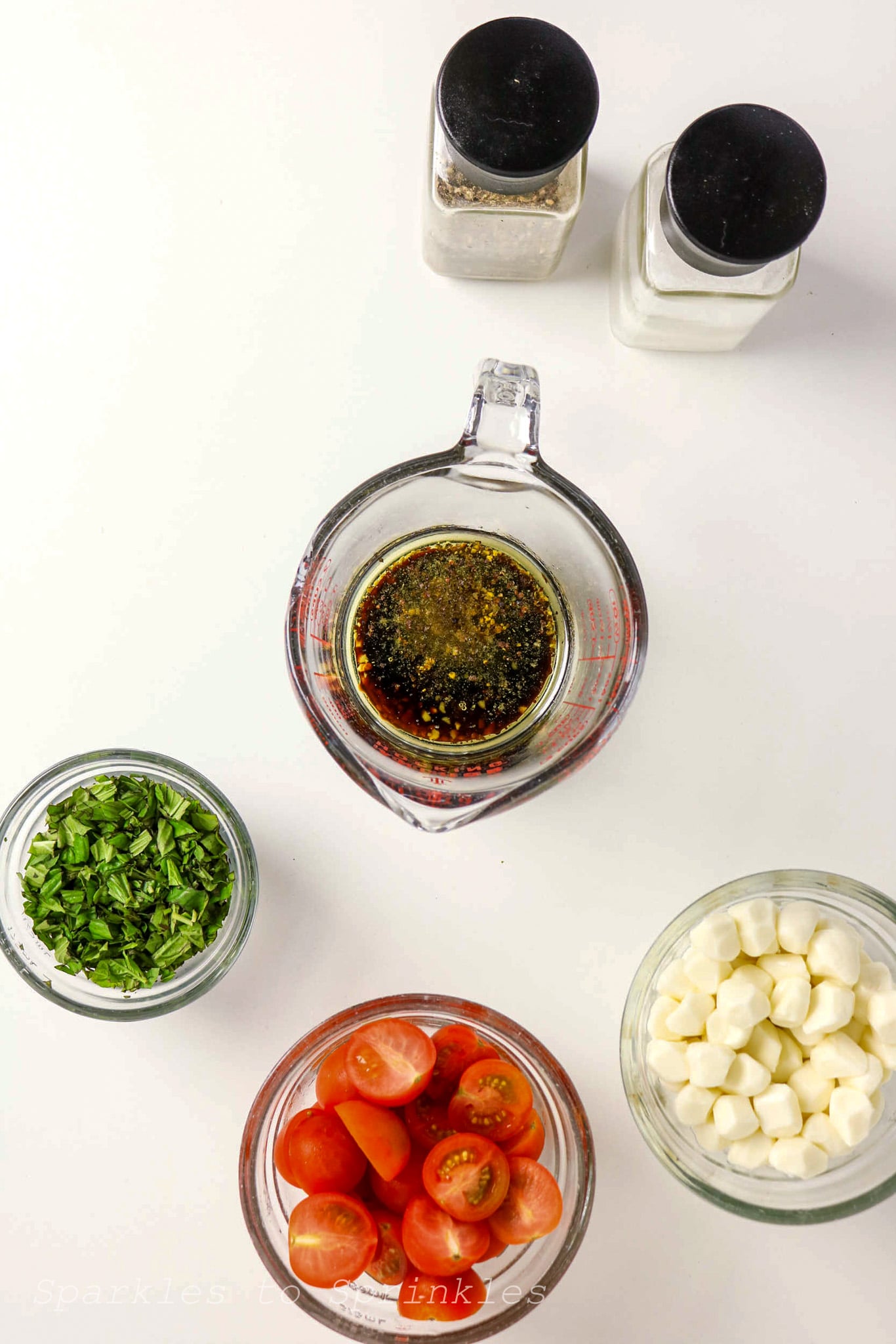 - 8 ounces fresh mozzarella pearls (or cubed mozzarella)