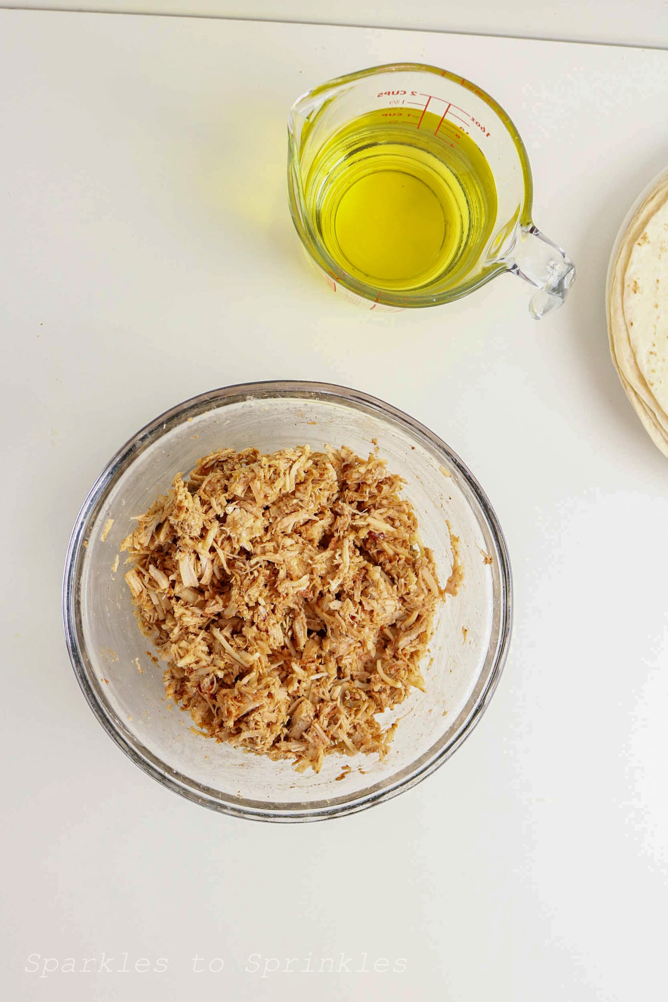 - 2 cups cooked, shredded chicken