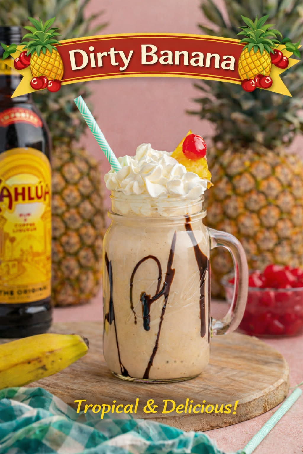 This Dirty Banana Drink recipe combines banana, rum, Kahlua, and milk into a tropical drink you can now enjoy at home in less than 5 minutes. As an added bonus you can easily turn it into a mocktail for the kids!