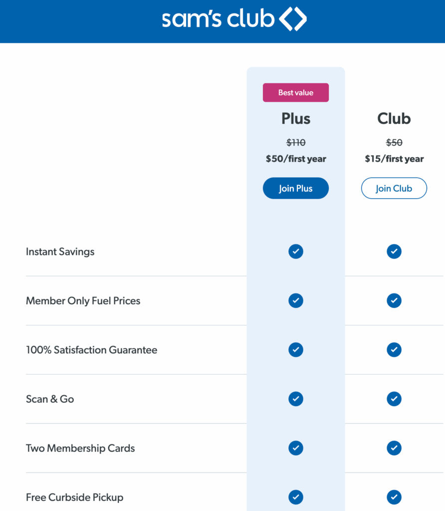 Want to see the full list of membership perks or compare the two options? You can check out all the details here: Join Sam’s Club.