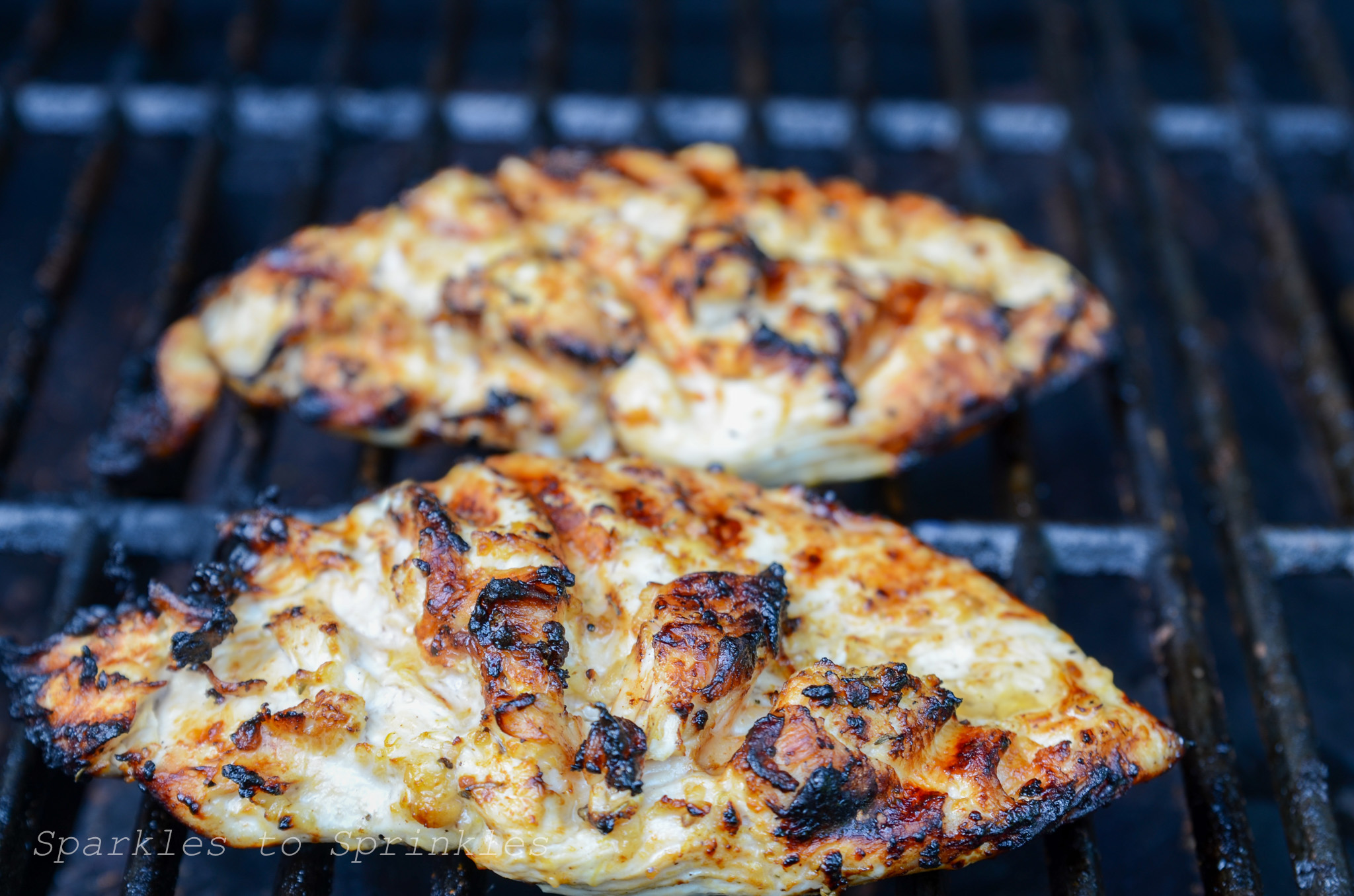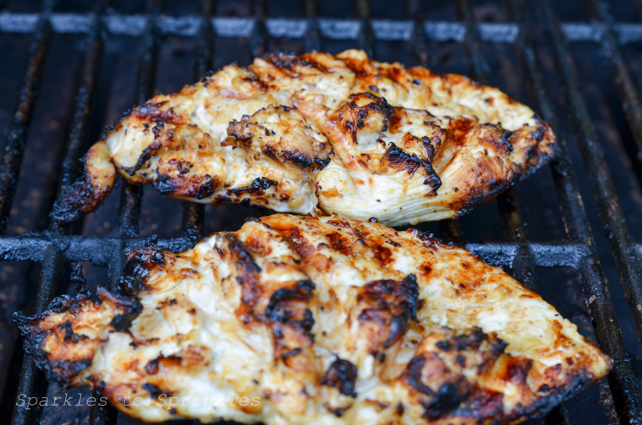 - Place your chicken breasts on to your grill once preheated to a nice high heat. Cook each side for 3-4 minutes. You do not want to over cook. Baste with additional marinade while cooking.
