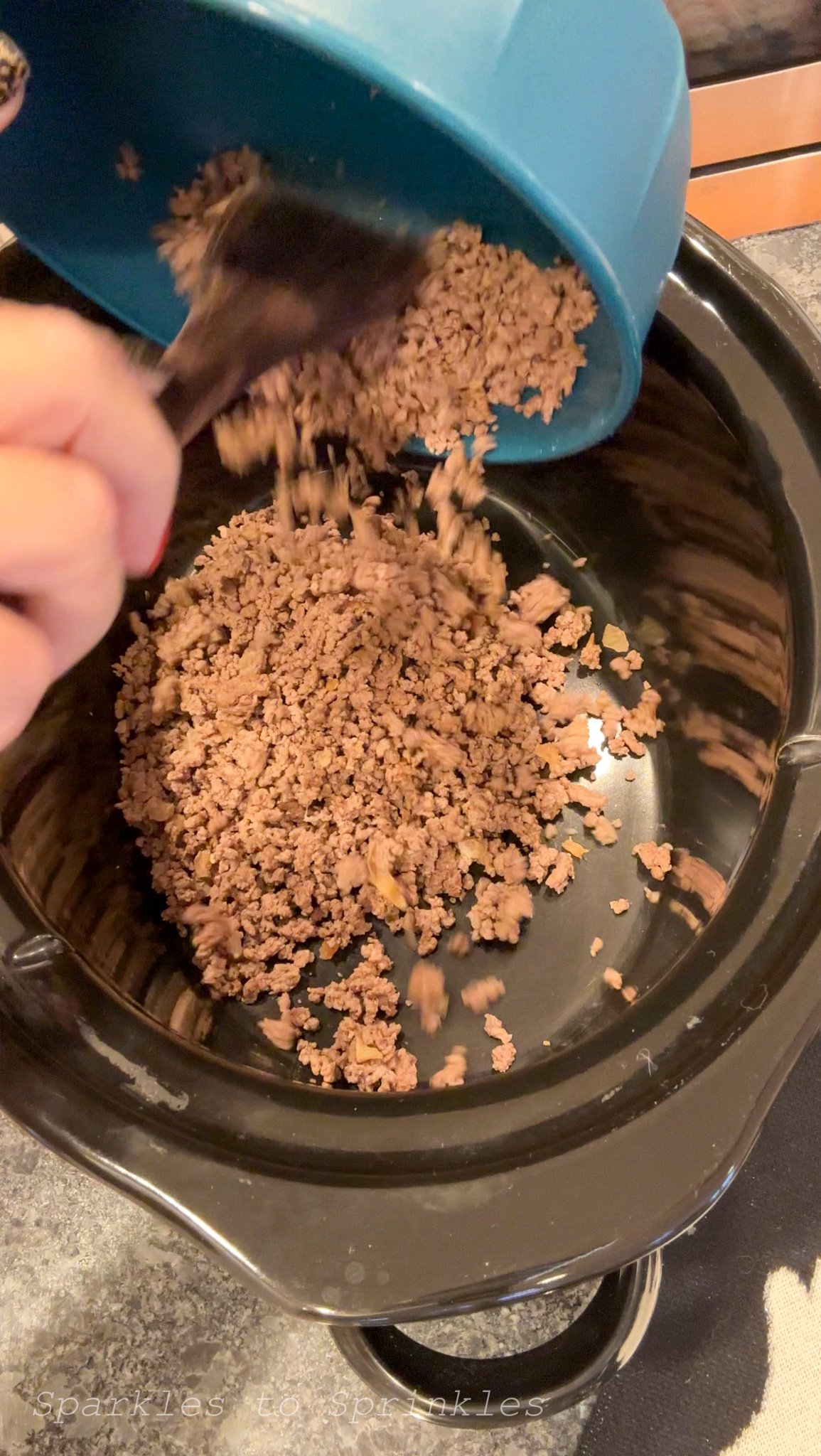 - Add the cooked meat to your crock pot.