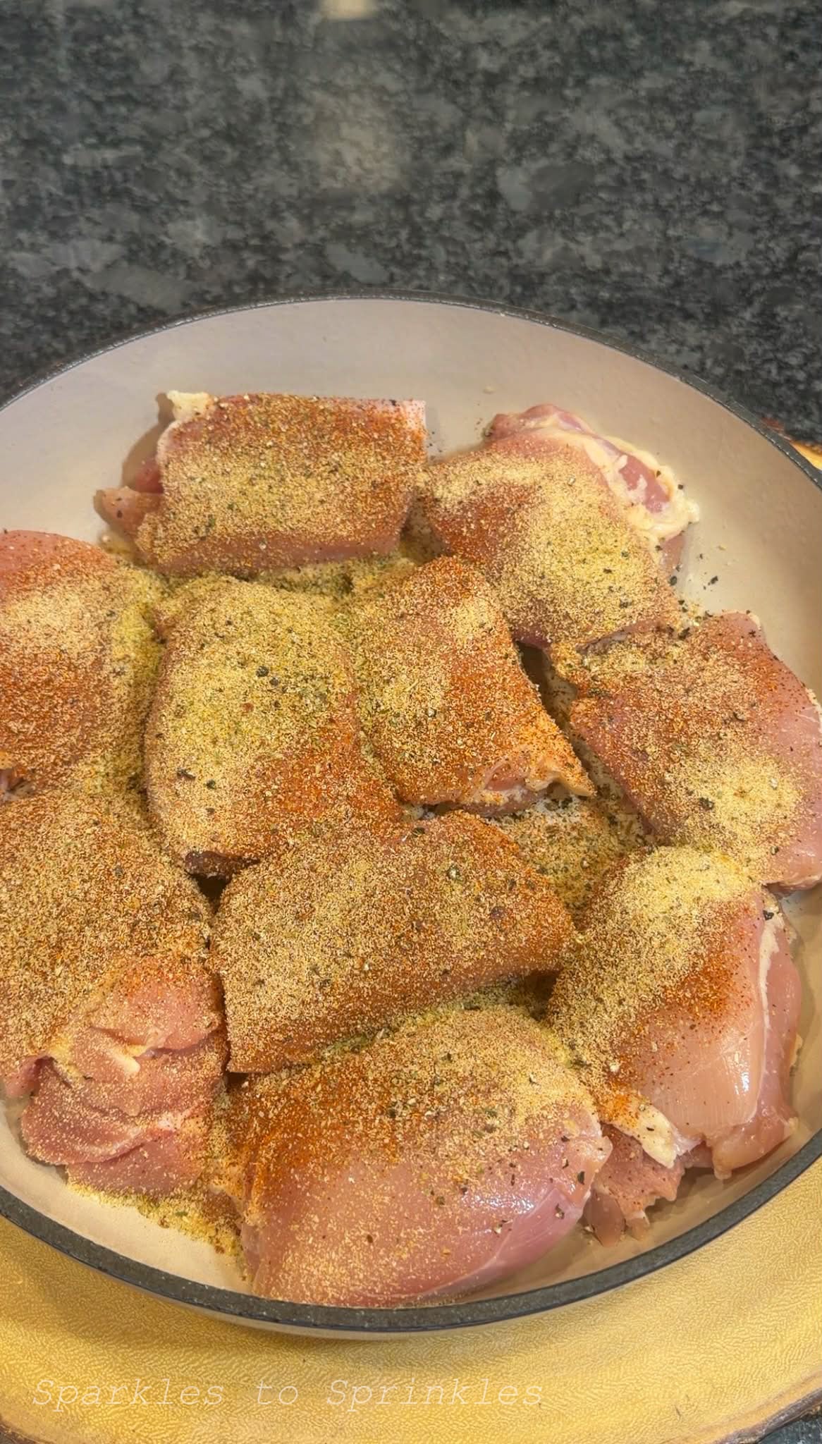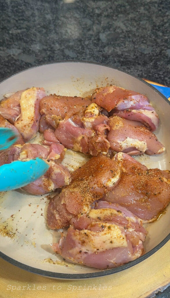 - Season generously. Chicken thighs can handle a good amount of seasoning, and it helps build the deep savory flavor this recipe is known for.