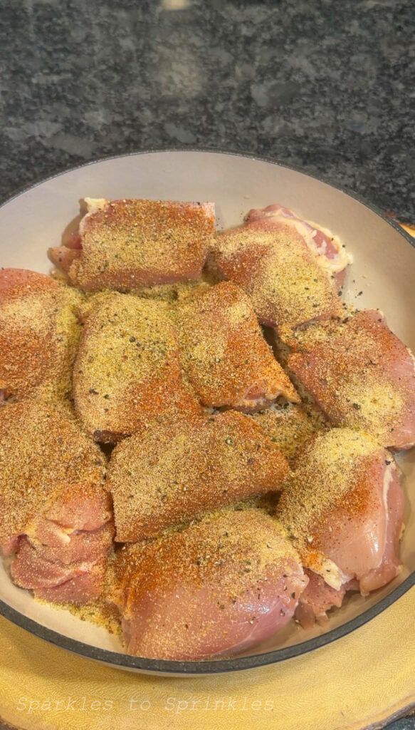 - Very generously season your chicken. You can use your favorite seasoning blends. I put my choices in the ingredients list.