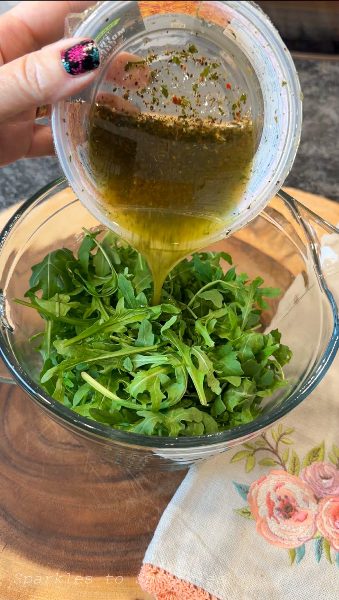 Many of the recipes do not finish off their arugula with Balsamic glaze. I highly recommend that you do so. To me, it is a key ingredient.
