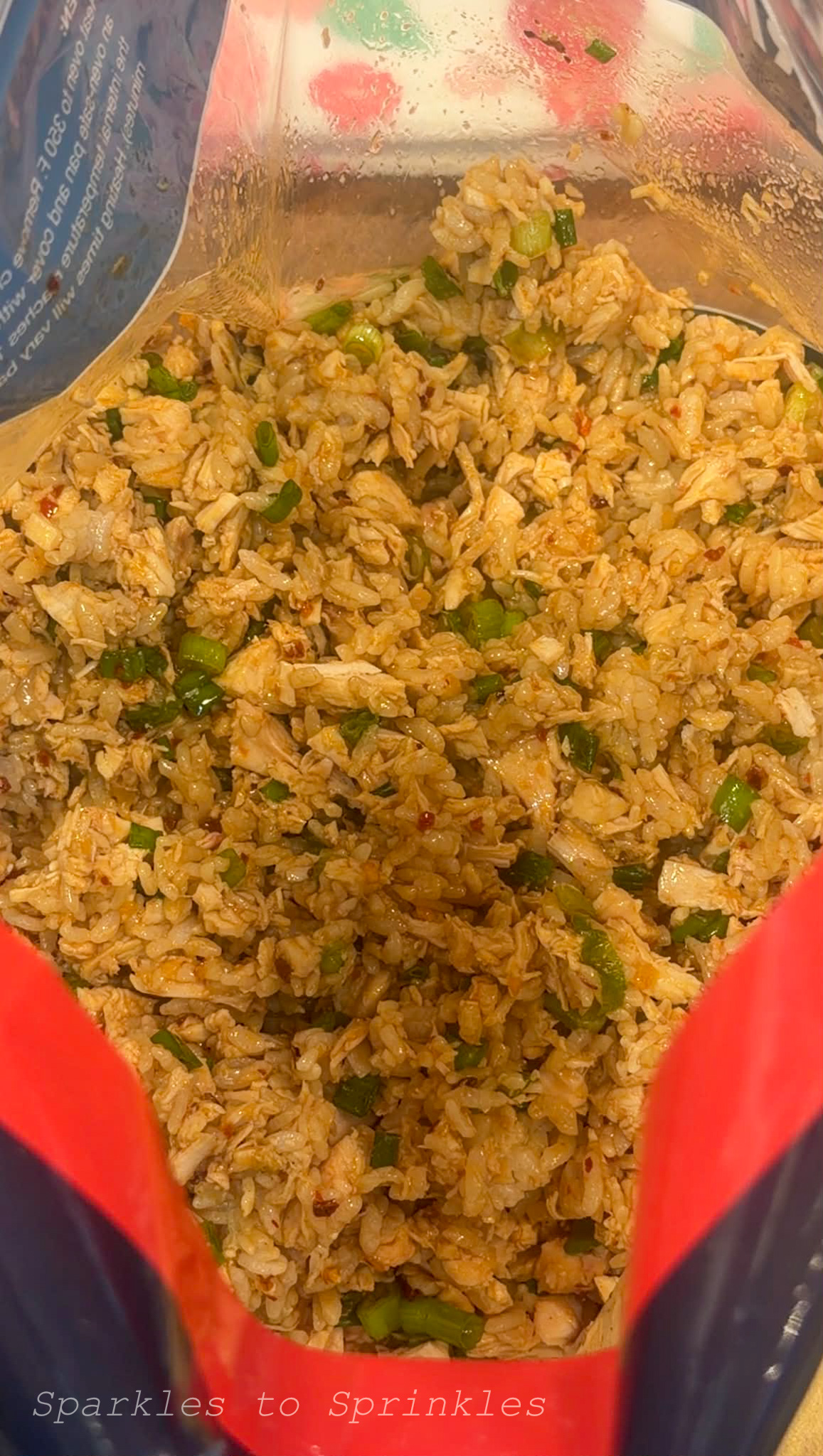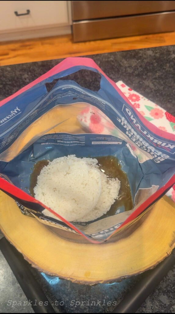 2 to 3 cups cooked white rice heated (I used 2 of Costco’s sticky white rice)