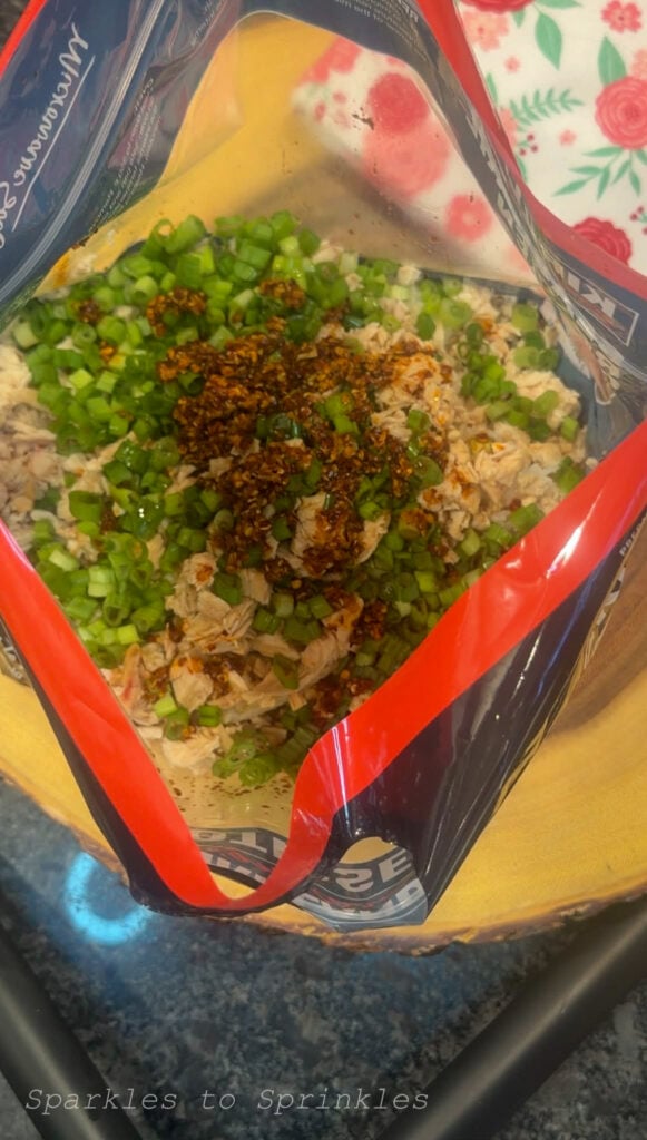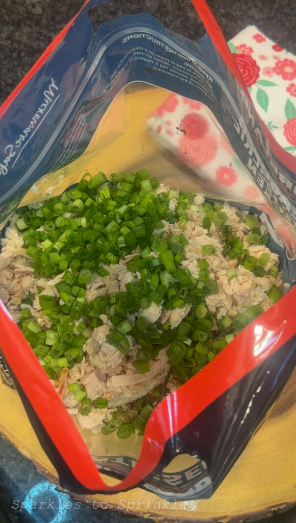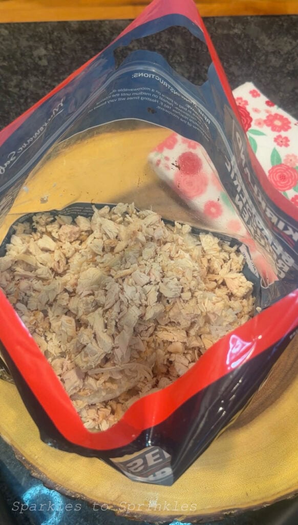 1 rotisserie chicken – Shred, leave the juice in the bag